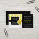 Stilvolle Geschäftskarte, mit einem wunderlichen gelben und weißen gestreiften Entwurf auf dem links, mit mit einem gerahmten Bereich für Handelsnamen, der eine hübsche Rosenblüte auf ihm hat. Textbereich auf der rechten Seite der Karte ist festes Schwarzes. Fertigen Sie diese große schauende Karte für selbst besonders an und die Schriftartart ändern, Farben, und Größen zum Anzug Ihre Gleichen, fügen mehr Textfelder auf der Rückseite hinzu, wenn Sie wollen.