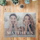 Ein stilvolles, modernes Foto-Urlaubspuzzle mit Ihrem Nachnamen in klassischer Typografie gepaart mit einem handgeschriebenen Schriftart in Weiß über Ihr vollformatiges Foto. Ihr besonderes Foto wird in diesem einzigartigen, modernen und minimalen Design wunderschön aussehen. Ein lustiges, minimales Design, um sich von der Menge in dieser Weihnachtszeit abzuheben! Das abgebildete Bild dient nur zur Veranschaulichung, um durch Ihr eigenes Foto ersetzt zu werden. Das Bild der Platzhalter ist ein wunderschönes, glückliches junges Paar, das auf ihren Ellenbogen auf dem Boden ihrer modernen neutralen Zuhause sitzt.