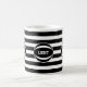 Moderne Stilkugel auf schwarz-weiß gestreiftem Tee oder Kaffee-Tasse. Leichter Text kann personalisiert sein.