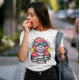 Das Material ist eigentlich gute Qualität, der Stoff ist nur etwas verzogen so dass der Drück leicht schief aussieht. Der Druck ist gute Qualität, habe das T-Shirt schon einige male gewaschen.