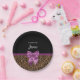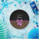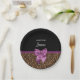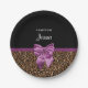 Bleibe Sie auf Mode mit diesem stilvollen braunen Pelzleoparddruck-Papier-Teller mit einem eleganten lila Band, das in einen Chicbogen gebunden wird. Personifizieren Sie diesen modernen und noblen Tierdruckentwurf, indem Sie Ihren Namen addieren. Ebenedruckbild, nicht tatsächlicher Pelz oder Band.