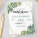 Unsere stilvolle Succulents Geometric Frame Bridal Dusche Einladung ist Teil unserer stilvollen Succulents Wedding Collection. Diese Sammlung zeigt wunderschöne grüne Aquarellsukkulente, die um einen goldenen geometrischen Rahmen und moderne Kalligraphie mit traditionellem Text umwickelt sind. Diese Hochzeitskollektion ist ideal für Hochzeiten im Sommer oder in der Wüste.