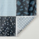 Stilvolles Design Nahtlose Patchwork-Muster aus gehefteten Quadraten mit verschiedenen geometrischen Ornamenten. Textilabdruck in blauen Farben.