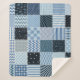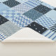 Stilvolles Design. Nahtlose Patchwork-Muster aus gehefteten Quadraten mit verschiedenen geometrischen Ornamenten. Textilabdruck in blauen Farben.