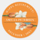 Feiern Sie mit diesem personalisierten Happy Retirement Round Aufkleber eine stilvolle und unvergessliche Pension. Mit eleganter weißer Typografie, einer Retro-Vintagen Illustration der Blume der weißen Lilie und einem niedlichen blauen Schmetterling auf hellorangefarbenem Hintergrund verleiht dieses Design jedem Fest eine einzigartige und raffinierte Touch. Dieses feine Design ist perfekt für eine Frau oder eine Dame geeignet und kann mit dem Namen und dem Rentenjahr des Rentners abgestimmt werden oder für andere besondere Anlässe wie Jubiläen oder Geburtstagsfeiern verwendet werden. Dieser einfache, aber stilvolle Aufkleber eignet sich ideal für Umschläge, Gastgeschenke und Geschenke und ist somit die ideale Wahl für jede Veranstaltung. Ob für einen Ruhestand oder einen anderen Feiertag, dieser personalisierte Aufkleber bietet eine raffinierte und nachdenkliche Art, den Anlass zu markieren. Machen Sie Ihre Feier unvergesslich mit diesem charmanten Design.