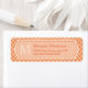 Mit den trendigen Rücksendeadressen-Aufklebern in Orange und Weiß Quatrefolienmuster mit elegantem gerahmtem Monogramm verleihen Sie Ihrem persönlichen Stil ein elegantes, modernes Ambiente. Personalisieren Sie dieses stilvolle Design, indem Sie Ihren Namen einen mit Monogramm Anfang hinzufügen.