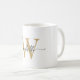 Moderne, weibliche, Minimalistische, elegante White und Gold Monogram Anfangsname Weibliche Signatur Script Custom Personalisiert Coffee Tasse. Dieses minimalistisch schlichte Farbdesign mit Ihrem Vornamen in einer hübschen Hand geschwaschenen Schwanz-Schriftart Typ Typografie (oder Kalligrafie), Monogramm Initialvorlage, leicht zu personalisieren. Große stilvolle feminine Hauswärmeschenke, auch zum Geburtstag, süße 16 Geburtstagsparty, Hochzeit, Muttertag, Babydusche, Brautparty, für Graduiertenfeier und Es ist für das Mädchen, das stilvolle Minimalprodukte Liebe.