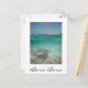 Carte postale verticale avec une image sous l'eau d'un stingray nageant dans le lagon bleu clair de l'île tropicale pacifique Bora Bora, près de Tahiti, en Polynésie française pendant la plongée sous-marine avec une frontière blanche et le texte : 'Bora Bora'.