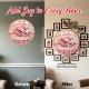 This charming round wall clock features a whimsical 3D-style digital illustration with a cozy, handcrafted aesthetic. The design showcases two large, layered hearts made of pink quilted fabric and striped patterns, complete with decorative buttons and delicate stitching details. The word "HAPPY" is displayed in raised red lettering at the top, while a flowing parchment banner at the bottom carries the elegant message "Valentine's Day." The background consists of rustic white wooden planks adorned with small floating pink hearts and delicate floral vine accents. The perimeter is finished with a soft pink frame, and a pink-and-white plaid pattern decorates the lower section. This functional home accessory is a perfect gift for Valentine Day or anniversaries, adding a touch of shabby chic romance to any bedroom, kitchen, or living space.