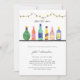 Stock le bar wedding shower invitations comprend alcool d'aquarelle et bouteilles de vin sur une étagère avec des lampes à cordes suspendues au-dessus. (art original par Shelley Winters Design)