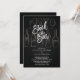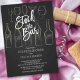 Stock élégant le bar nuptiale invitation à la douche avec des bouteilles dessinées à la main et des lunettes de bar sur un arrière - plan en chalkboard noir tendance avec une police moderne lettrée à la main.
