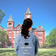Black Cap und Proud Mutter eines Absolventen Text auf Denim Jacket. Text kann personalisiert sein.
