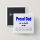 Quadratischer Knopf mit Wörtern "stolzer Vater auf ein Kind mit Autismus". Das Wort "Autismus" wird in einzelne Puzzlespielstücke geschrieben.