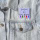Im Nachhinein würde ich eher den Button mit Magnet bestellen... damit dieser bei jeder Kleidung angebracht werden kann. Sehr gute Bildqualität