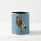 Ein Steinechat, der an einem Schilf klammert und auf einer Tasse schön dargestellt wird.