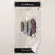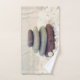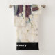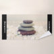 Serviette sertie d'une photo avec des piles de rochers les unes sur les autres. Entouré de rochers blancs et de petites fleurs blanches.