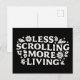 Less scrolling more living stop doomscrolling offline motivational mental health support quotes floral aesthetic. Social media addiction screen time break digital detox reminder gift small print black postcard.