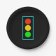 Fett grafische Darstellung des Kontrolle Signal Light von Traffic, rot, gelb und grün, mit hellblauer Grenze, auf schwarzem Hintergrund.