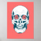 Dies ist ein surreales und zum Nachdenken anregendes Bild mit einem menschlichen Schädel in einem dramatischen Asphalt-Grauton, mit zwei hellgelben Stoppschildern, die seine Augenhöcker bedecken. Die Stoppschilder werden durch die ausgestreckten Arme zweier kleiner Figuren aus dem Schädel aufgehalten, was ein Gefühl von unheimlicher Symbolik schafft. Der korallenfarbene Hintergrund schafft einen auffallenden Kontrast, der die Kühnheit des Schädels und die Lebhaftigkeit der Stoppschilder verstärkt. Das Kunstwerk erinnert an Themen wie Grenzen, Warnungen oder Stoppen von Denkprozessen, während es gleichzeitig ein visuell überzeugendes Gleichgewicht von Wärme und Stärke zeigt.