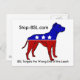 Stopp-BSL.com Logo Hund auf einer Postkarte, zeigt unsere Web-Adresse und Slogan.