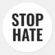 Stopp Hate, Schwarz-weiße minimalistische klassische Runde Sticker Gleichheit, Black Lives Matter, BLM, Stopp Gewalt gegen asiatische Menschen, Stopp Covid 19 Corona Virus Hassverbrechen Verbrechen