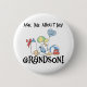 Ein Storch sitzt unter einigen Spielwaren einschließlich einen Ball und Auto und schwarzer Text liest "fragen mich über meinen Enkel!" auf diesen niedlichen T - Shirts, Knöpfen, Magneten, Taschen und anderen Einzelteilen, die ein großes Memento entweder für Großmutter oder Großvater sind, wenn das neue Enkelkind geboren ist!