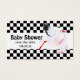Babydusche Save the Date - Schwarzweiß-Schachbrett und bezauberndes Storch mit einem rosa umhüllten Baby-Duschkopf - Niedliche Babydusche Save the Date Visitenkarte zum Verteilen am Arbeitsplatz oder auf dem Spielplatz ... wo immer - leichter als das Versenden von Einladungen für Empfänger nah auf Zuhause.
