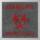 Gefahr - Biogefährdung - bedrücktes graues Poster mit roter Biogefährdung Symboldesign.