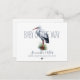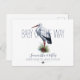 Eine schöne Stork Illustration Schwangerschaftsankündigung Sprichwort Baby ist auf dem Weg, mit weichen blauen grauen whimsical Typografie; für eine einfache skurrile Geschlecht neutrale Ankündigung. Geben Sie Ihre Namen und das Fälligkeitsdatum ein.
