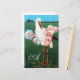 Elégant, drôle, design dynamique, rose turquoise couleurs bleu pour bébé jumeau et petite fille avec une cigogne fantaisie dans le champ vert, la nature sous le ciel bleu, re-élaboré de vintage.