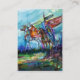 Mittelalterliche Ritter mit Pferden, farbenfrohe und ausdrucksvolle zeitgenössische figurative Malerei in lebhaften blau, rot, grün, weiß, braun, Aquarell von Alessandro Lumini 1989 Inspiriert aus der Legende von König Artus und den Rittern des Rundtischs.