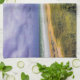 Dieses Küchentuch zeigt ein Originalfoto von ZoeSPEAK, von Jupiter Beach an einem stürmischen Tag. Das Land und die Seebügel bieten von den hohen Dünen, die von den Meereswüstenbuchten bedeckt sind, einen langen Blick auf den Sand und das Meer. Der blau-graue Himmel ist voller bedrohlicher, aber schöner dunkler Wolken. In der Ferne erstreckt sich ein Steg ins Wasser.