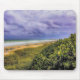 Dieses Mouse Pad zeigt Kunstwerke, die von einem Originalfoto von ZoeSPEAK vom Jupiter Beach an einem stürmischen Tag gemacht wurden. Das Land und die Seebügel bieten von den hohen Dünen, die von den Meereswüstenbuchten bedeckt sind, einen langen Blick auf den Sand und das Meer. Der blau-graue Himmel ist voller bedrohlicher, aber schöner dunkler Wolken. In der Ferne erstreckt sich ein Steg ins Wasser.