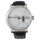 Uhr, Vintage Männeruhr mit schwarzem Lederarmband