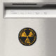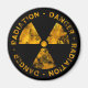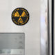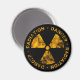 Schwarzer Magnet mit stark bedrücktem gelben Strahlungssymbol.