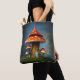 Illustriertes Pilzhaus mit Türen und Fenstern im bezaubernden Wald.