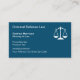 Einfache Visitenkarte des Rechtsanwalts mit Skala des Justizzeichens, die Sie mit Ihrem eigenen Firmenlogo oder grafischem und einfachem legalem Themenlayout ersetzen können, können Sie online anpassen. Entworfen für Anwälte, die im Bereich des Strafrechts, der Strafverteidigung oder einer Kaution praktizieren.