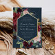 Unsere Hochzeitseinladung von Radiant Bloom umgibt Ihre Hochzeitstage-Details mit einem geometrischen Rahmen von bemalten Aquarellfarben-Blume in Bordeaux-Marsala, Rosa und Marineblau, mit grünem botanischem Blattwerk und Eukalyptus-Blätter. Eine schöne Wahl in üppigen, gesättigten Farben für Herbst- oder Winterhochzeiten, mit eleganter Goldfolie, um das Aussehen zu vervollständigen.