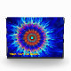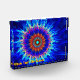 Ein mehrfarbiges Fraktal, das an eine psychedelische Krawatte erinnert; orangefarbenes Rosa und Blau auf einem dunkleren Hintergrund. Passen Sie Ihren eigenen Text an.