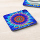 Ein mehrfarbiges Fraktal, das an eine psychedelische Krawatte erinnert; orangefarbenes Rosa und Blau auf einem dunkleren Hintergrund. Passen Sie Ihren eigenen Text an.