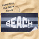 STRAND BITTE! Dieses coole, einzigartige Design zeichnet sich durch moderne Typografie aus, die der Form eines Surfbrettes auf einem gestreiften Hintergrund ähnelt. Verwenden Sie das Entwurfstool, um die Streifen-Farben zu ändern.