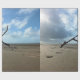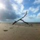 Ein fotografisches Design von Strand, Himmel und Zweig.