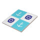 Blaue und weiße Schachbrettfliese hat einen weißen Bootsanker und Rad eines blauen Kapitäns.