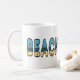 Die Buchstaben werden als Leinwand für Sand-, See- und Himmelsbilder verwendet. Dazu kommen noch ein Boot, Ball, Eimer und Pik, Wal, Windmühle, Möwen und Sonne. Eine geniale Grafik für Strandliebhaber!