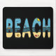 Die Buchstaben werden als Leinwand für Sand-, See- und Himmelsbilder verwendet. Dazu kommen noch ein Boot, Ball, Eimer und Pik, Wal, Windmühle, Möwen und Sonne. Eine geniale Grafik für Strandliebhaber!