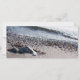 Nahes Foto einer kleinen Welle, die über Algen und Sand den Strand trifft. Aus Fokussteinen im Vorfeld.