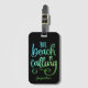 Blau und grün whimsical "der Strand ruft" Typografie-Design auf einem schwarzen Hintergrund, mit einem Monogramm, das Sie anpassen können, indem Sie "personalisieren Sie diese Vorlage". Das ist ein wunderschönes und dramatisches Design, das Ihr Gepäck auf dem Gepäckkarussell auffällt! Wenn Sie Fragen oder Wünsche haben, kontaktieren Sie uns bitte über den Chat.