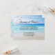 Einladungs-Template für Strand oder Hochzeit in Urlaubsort mit zusätzlichen Informationen für Ihre Hochzeitsgäste. Gut, um Fahranweisungen, Hotel- oder Unterkunftsinformationen hinzuzufügen oder wenn die Festlichkeiten an einem anderen Ort als der Zeremonie stattfinden. Sie können alle Textfelder anpassen, verschieben oder löschen. Es ist auch möglich, Schriftart und mehr zu ändern. Für alle Optionen wählen Sie "Anpassen". Diese Einladung passt zu den Einladungen für Hochzeiten.