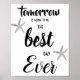 Erinnern Sie Ihre Gäste daran, dass morgen (Ihr Hochzeitstag) der beste Tag aller Zeiten mit diesem lustigen Strand Thema Schild sein wird. Ein Probe Dinner muss für Ihre Hochzeit zum Thema Strand! Die Anmeldung kann auch an jedes Thema angepasst werden (einfach den Seestern entfernen/ändern, um es an Ihr Thema anzupassen!)