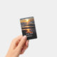 Identifikations-Abzeichen Geschäft des Strandes themed mit den Abzugsleinen geschaffen mit einem schönen Strandsonnenuntergang in einem landschaftlichen Küstenbild der Schönheit entworfen als Geschäfts- oder Ereignis-Abzeichen für einen Ort im Freien, ein christliches Geschäft oder ein Seminar.